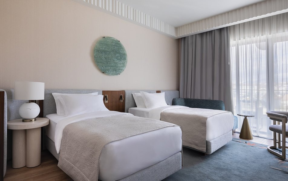 | Рестораны и бары | аква-бар: у инфинити-бассейна в VIP-зоне только для взрослых на 8-ом этаже (премиальные коктейли, напитки), Amber Sky Bar - летний бар под открытым небом на восьмом этаже отеля (премиальные коктейли, крепкие напитки, винная карта) бар: Fresh в зоне крытых бассейнов (nравяные чаи, витаминные и коллагеновые коктейли, фреши и смузи) бар у бассейна: открытого (сеты от DJ, освежающие коктейли и авторские напитки) кафе: Дельфин и Русалка (кухня + напитки, десерты, выпечка) летняя веранда лобби-бар: Mantera (кухня и бар) основной ресторан: Solis (шведская линия + меню à la carte), станция здорового питания ресторан: Le Ri - французская и паназиатская кухни, представительская гостиная M Club |