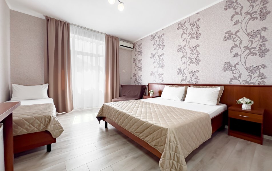 В номерах есть всё необходимое для комфортного отдыха: собственный санузел с душем и феном, удобная мебель, приятный текстиль, телевизор, кондиционер, холодильник, фен, Wi-Fi.