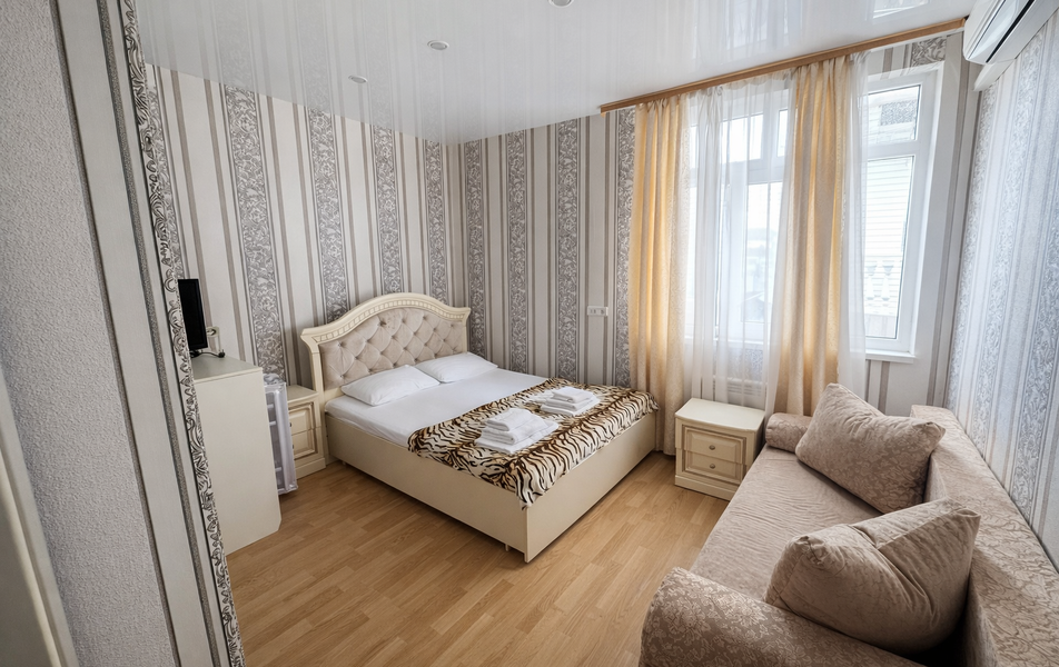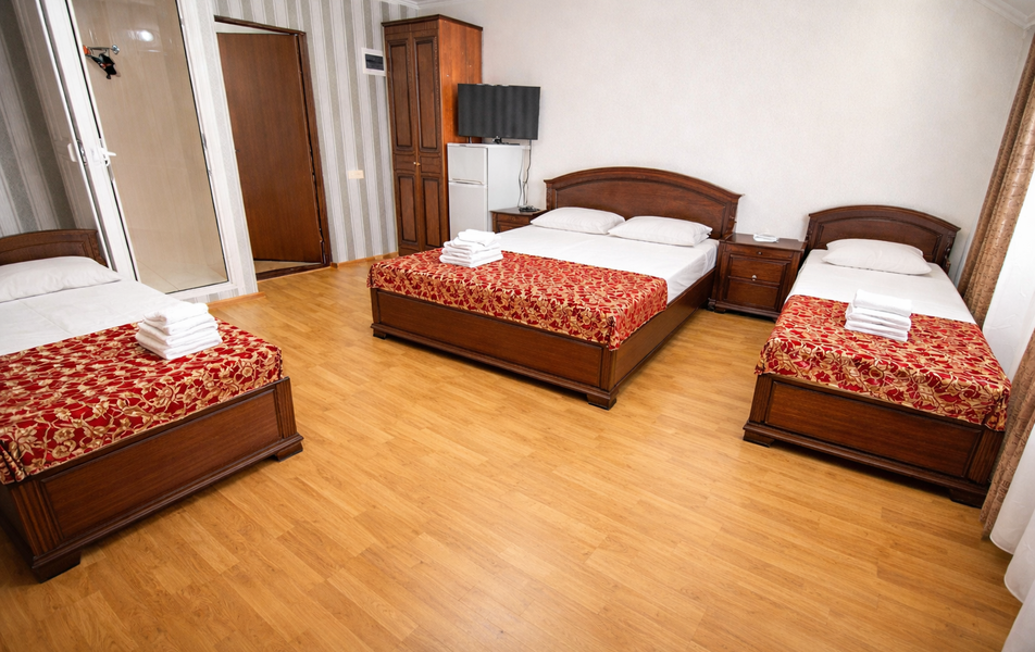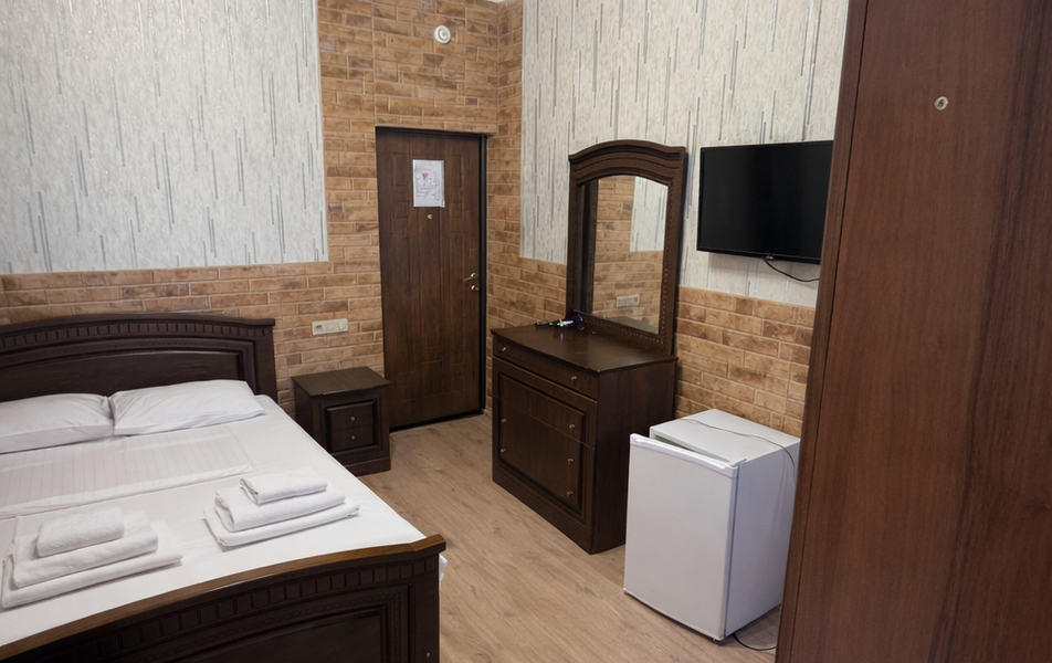 Трехэтажный корпус отеля разместился в современном районе Адлера в 400 метрах от моря. Жилой фонд, рассчитанный на 100 человек, предлагает отдыхающим разные варианты размещения – есть небольшие бюджетные номера, а есть просторные двухкомнатные.