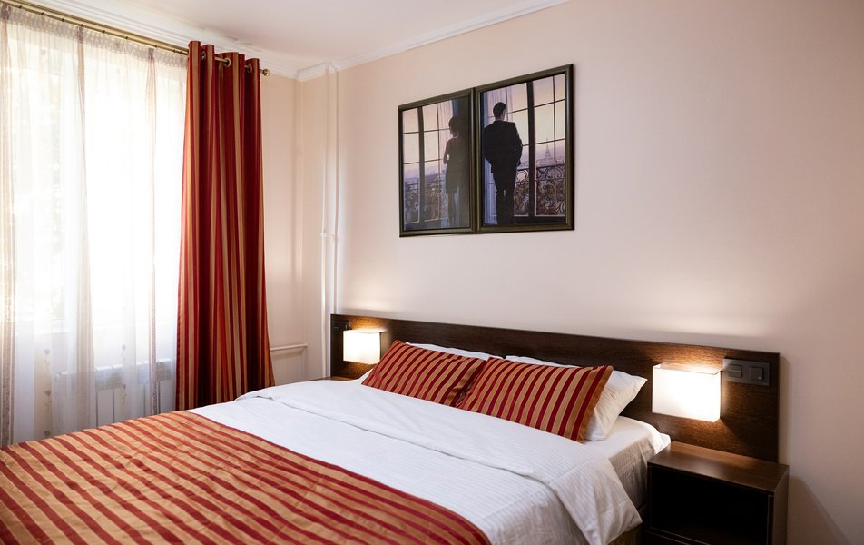 В гостевом доме имеются номера на любой вкус, стандартные, комфорт, полулюкс, семейные номера, а также дизайнерские апартаменты с кухней, которые отлично подойдут для отдыха. В каждом номере предусмотрены собственный санузел с душем и феном, набор мебели, кондиционер, телевизор, холодильник, сейф, интернет Wi-Fi. Приятным бонусом станет зона отдыха на общем балкончике с креслами из ротанга и столиком.