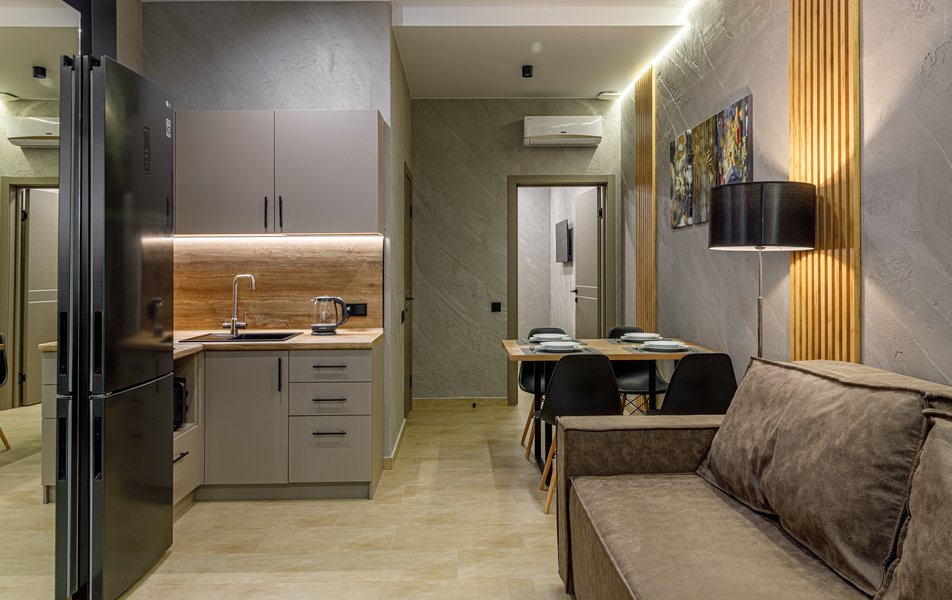 В апартаментах предусмотрена мини-кухня, оснащенная всем необходимы, есть ванная комнатой с душевой кабиной, выделены гостиная и спальная зоны. На всей территории отеля доступен беспроводной интернет.