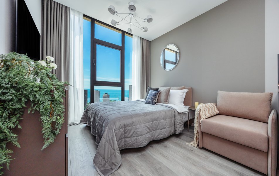 Сами апартаменты разместились в современном жилом комплексе с лифтами. Внутреннее пространство, рассчитанное на комфортное проживание до трех человек, оформлено с вниманием к деталям: здесь выполнен качественный ремонт, установлена современная мебель и вся необходимая техника. Гостям предоставляется уютная двуспальная кровать, практичное кресло-кровать, а также полностью укомплектованный кухонный уголок с плитой, холодильником и набором посуды для приготовления любимых блюд.