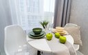 Для размещения предлагается два варианта. Первый — светлая студия площадью 22 квадратных метра, рассчитанная на двух гостей. Второй — более просторная двухкомнатная студия площадью 40 квадратных метров, которая комфортно вмещает до четырёх человек. В обоих вариантах предусмотрены большие панорамные окна с видом на Сочинский национальный парк и Кавказский хребет, а также столик с креслом, чтобы не спеша созерцать окружающую природу. В каждом номере — современная кухня с встраиваемой варочной панелью, духовым шкафом, холодильником, вытяжкой, микроволновой печью, чайником, а также полным набором посуды и кухонных принадлежностей. Оборудована обеденная зона.
