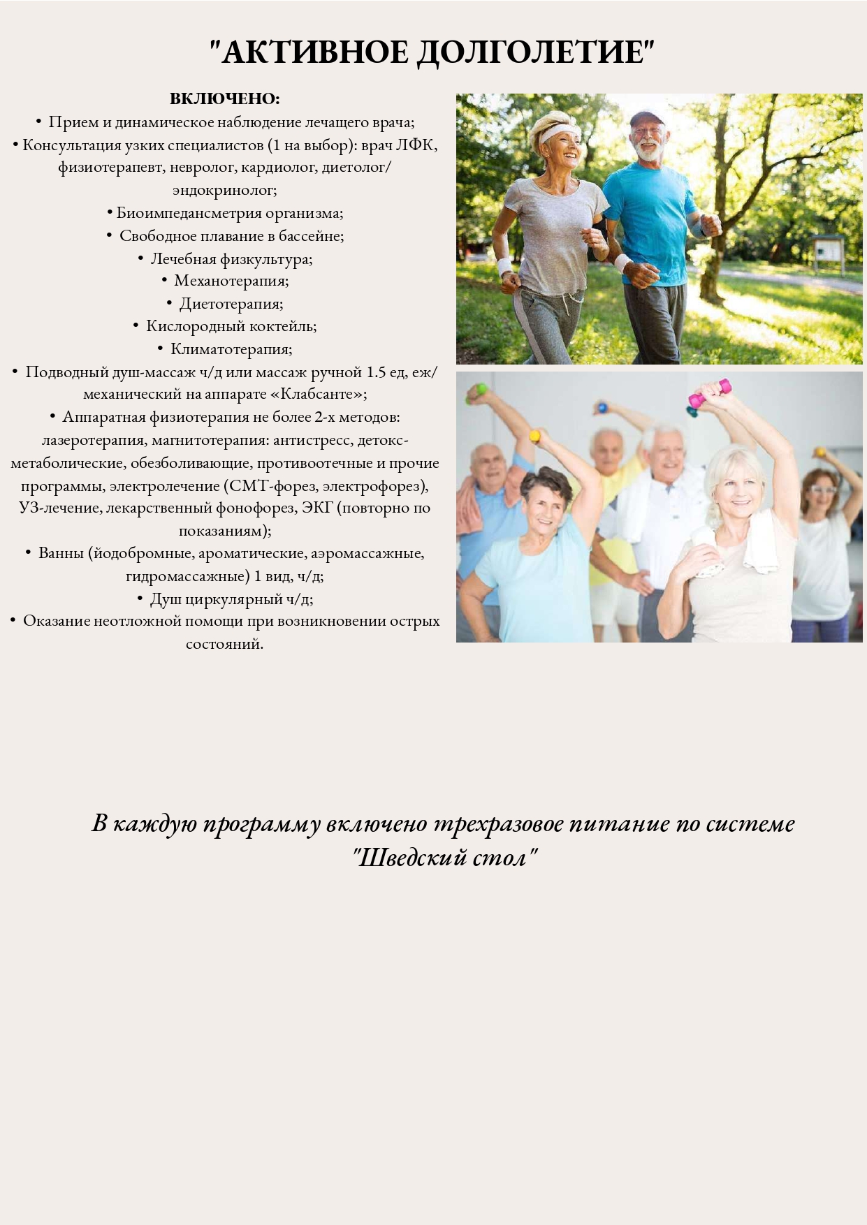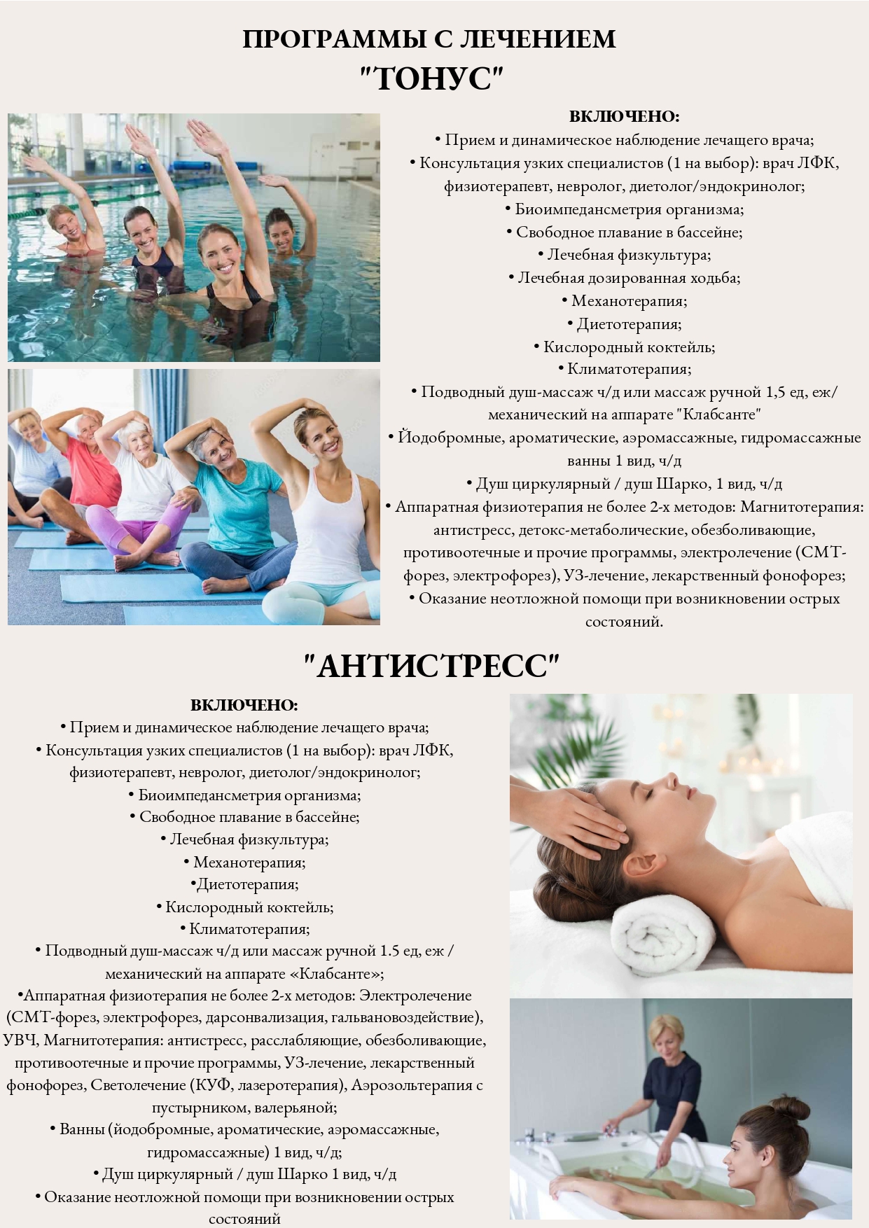 Для тех кто заботится о своем здоровье представлены разнообразные виды лечебных и оздоровительных программ.