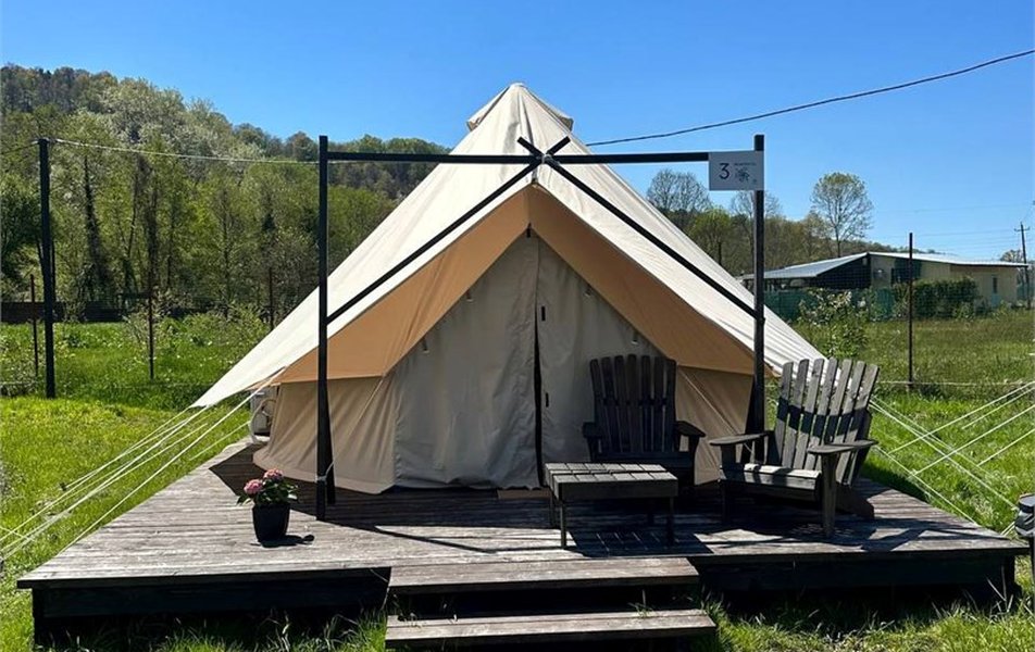 На территории глэмпинга расположены 15 комфортных шатров, кинотеатр под открытым небом, несколько площадок для активного отдыха и занятий спортом, банный комплекс и ГастроПарк.
