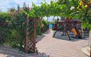 Территория гостевого дома большая, закрытая и продуманная для отдыха с детьми. В распоряжении гостей открытый подогреваемый бассейн с пресной водой и хорошей системой очистки, оборудованный высоким безопасным бортом. Рядом — детская площадка с горкой, качелями, лесенками, домиками и батутом, а также детские велосипеды напрокат. На территории есть спортивно-игровой зал, уютные беседки и мангальная зона для приготовления на свежем воздухе. Для любителей спокойного отдыха работает библиотека. Общая кухня оснащена всей необходимой техникой — вплоть до блендера и тостера, а также большим набором посуды. Беспроводной Wi-Fi доступен на всей территории, для автомобилистов предусмотрена парковка возле корпуса.
