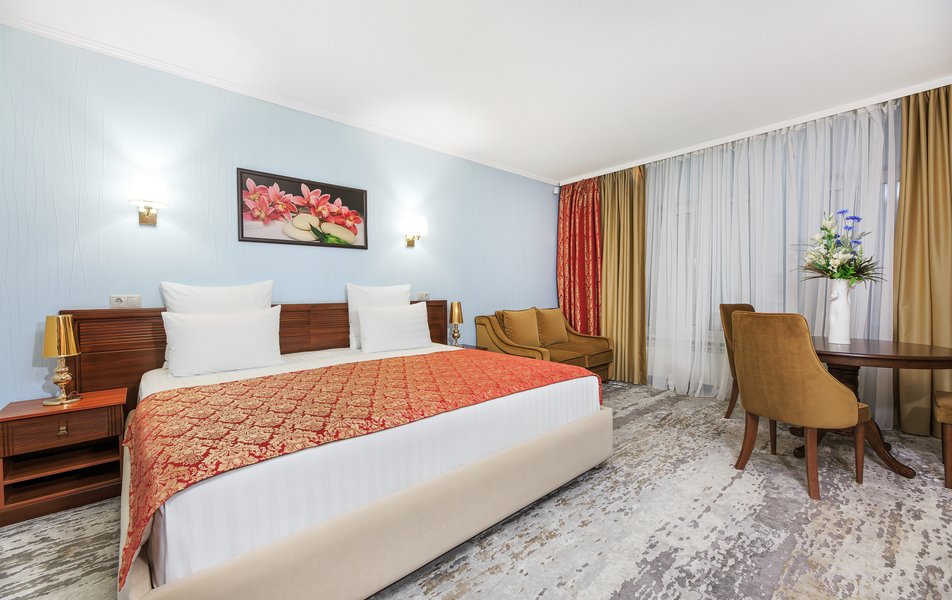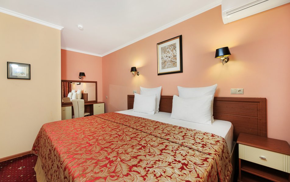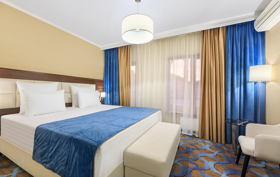 На благоустроенной территории площадью 15 гектаров расположено несколько трехэтажных корпусов. Жилой фонд, в общей сложности рассчитанный на 300 человек, предлагает гостям комфортабельные номера с классическими интерьерами. В каждом номере установлена сплит-система, есть плазменный телевизор, мини-холодильник, в ванной комнате для отдыхающих подготовлены косметические наборы. В ряде номеров предусмотрены меблированные балконы.