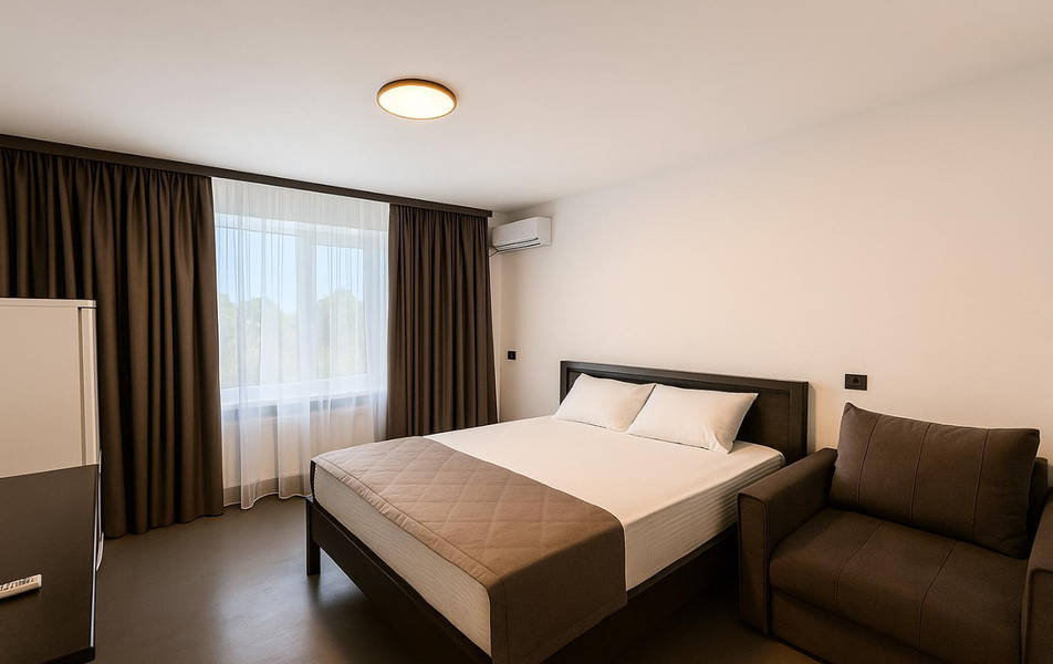 Гостям предлагаются уютные «Улучшенные» номера, некоторые с отдельным входом. Каждый номер оснащён современным ремонтом, кондиционером и беспроводным Wi-Fi. Вокруг отеля работают рестораны и столовые с блюдами кубанской и европейской кухни. Доброжелательный персонал всегда готов помочь с организацией экскурсий или трансфера.