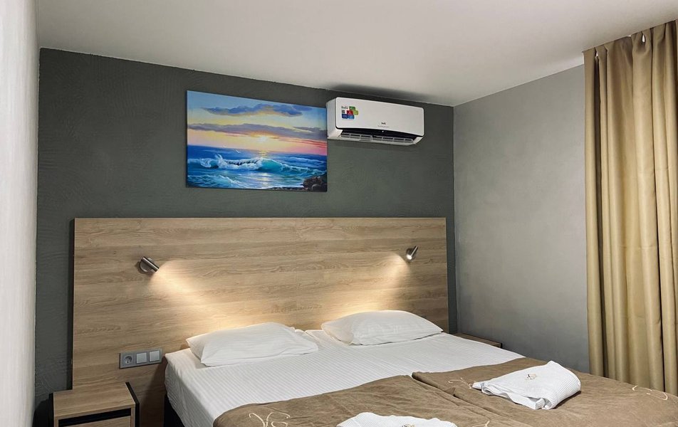 Ну , что сказать . Вялая троечка. Со скидкой на 23 февраля норм, но в сезон тут будет очень тесно. Питание, съедобно но скромное. И ограниченно в количестве. На всю массу заселившихся нехватало. Вино, шампанское норм. Пиво разбавленное . Номер был стандарт, сыро. Запах затухших вещей- пахли стулья, ковролин. Постельное, полотенце хорошие, выглажено все. Банных принадлежностей нет. Аквацентр неп...