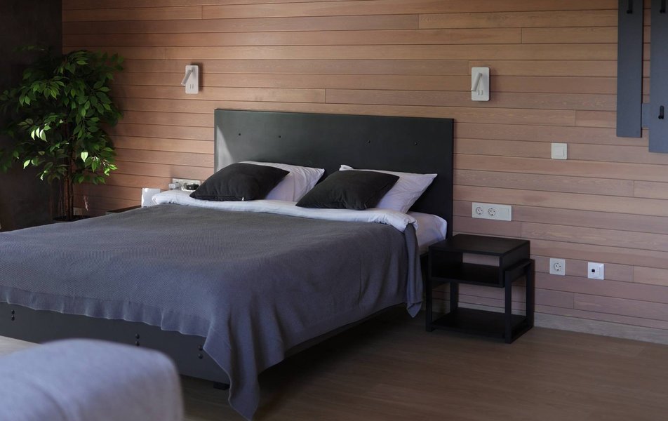 Комплекс, включающий пять жилых домиков в стиле barnhouse, занимает просторную ухоженную территорию с атмосферной подсветкой. Домики рассчитанны на размещение 2–6 человек. Везде теплые полы, гостиная, совмещенная с кухней, персональный санузел с душевой, перед каждым домиком – терраса с креслами и обустроенная зона барбекю. Все дома укомплектованы бытовой техникой: есть холодильник, микроволновка, варочная панель, чайник, фен, телевизор.