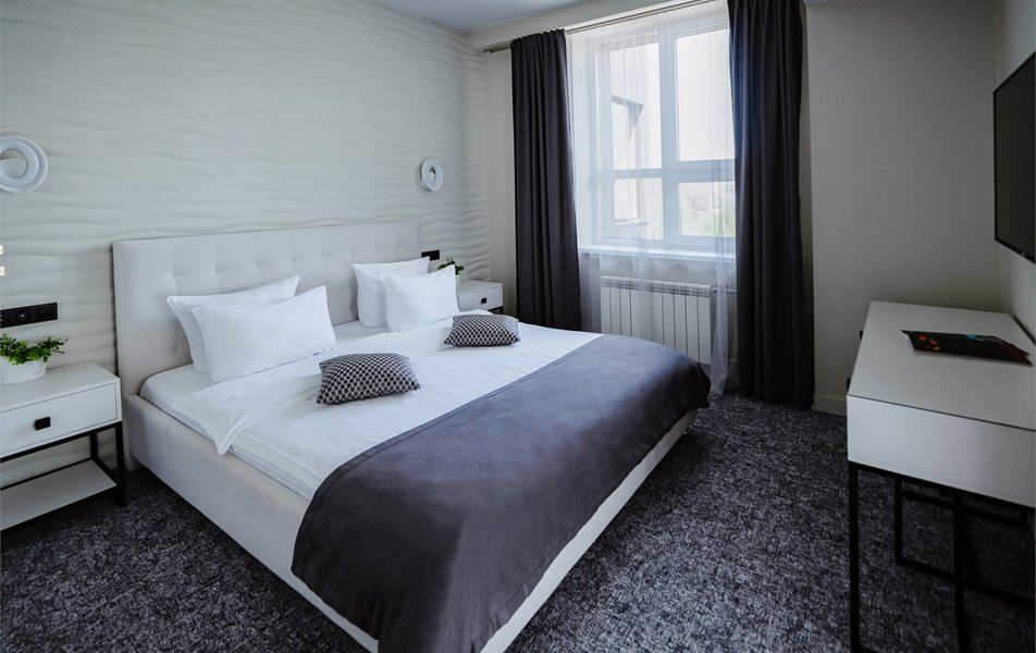 Современное пятиэтажное здание отеля с большими панорамными окнами возвышается на Сибирской улице. Небольшой жилой фонд предлагает гостям 20 комфортабельных номеров с удобствами. В каждом номере есть ЖК-телевизор, холодильник, апартаменты оснащены кухонной зоной, в ванных комнатах – душ, фен и косметические принадлежности.