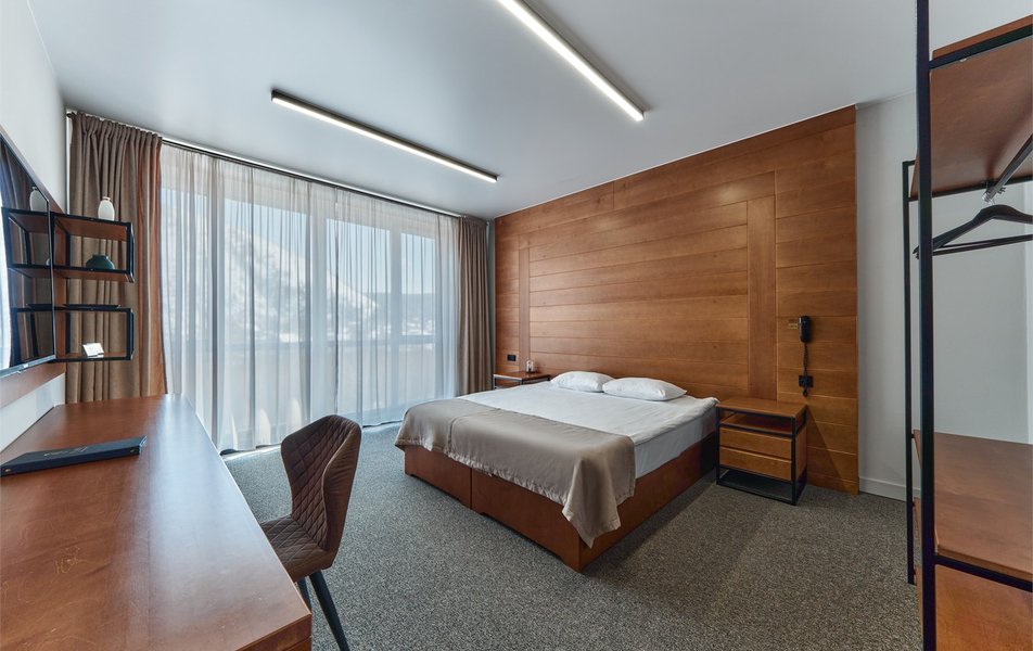 На втором этаже работает ресторан Тотем с панорамным видом. В меню – европейская и русская кухни, в баре богатый выбор напитков. К услугам отдыхающих – банный комплекс с саунами и бассейнами. Бассейны оснащены гидромассажными установками, предусмотрено неглубокое отделение для малышей. Также для юных гостей обустроена игровая комната. В числе стандартных услуг – парковка напротив гостиницы и безлимитный интернет.
