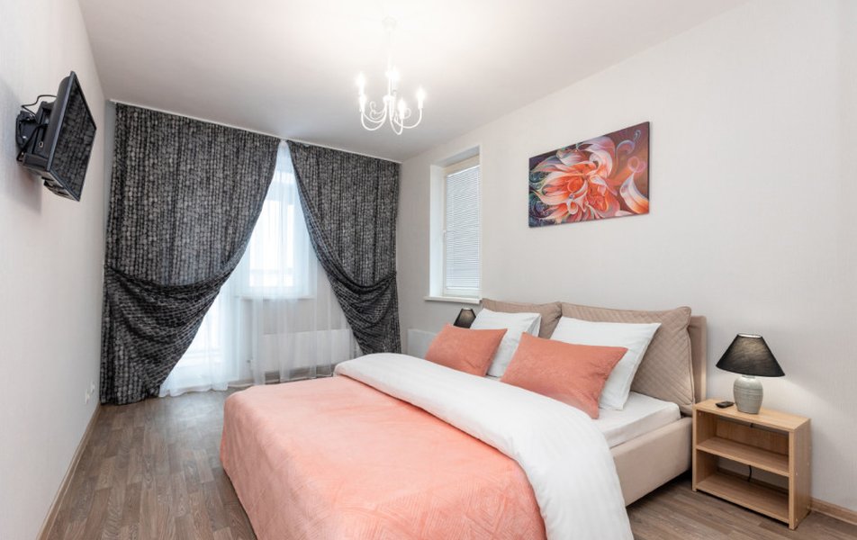Интерьер апартаментов выполнен в стиле современного комфорта, где каждая деталь способствует расслаблению. В гостиной удобный диван легко трансформируется в дополнительное спальное место, создавая зону для отдыха и приёма гостей, а торшер в стиле лофт и высокоскоростной Wi-Fi дополняют атмосферу уюта. Отдельная спальня с двуспальной кроватью на ортопедическом матрасе и вторым телевизором предназначена для полноценного отдыха, а плотные портьеры обеспечивают необходимую тишину и покой.