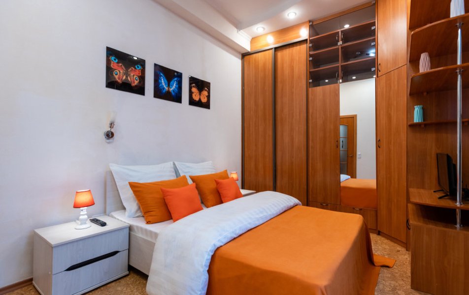 Пространство организовано с вниманием к практичности и уюту. Яркая спальня с двуспальной кроватью на ортопедическом матрасе и собственным телевизором предназначена для уединённого отдыха. В светлой гостиной угловой диван легко раскладывается во второе полноценное спальное место, создавая дополнительную зону для отдыха и приёма гостей. Телевизор в каждой комнате и высокоскоростной Wi-Fi позволяют каждому жильцу организовать досуг по своему вкусу.