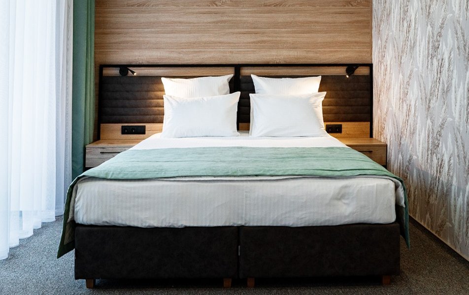 Курорт расположен в сосновом бору рядом с рекой Тобол, и занимает обширную территорию площадью 16 гектаров. Гостей ждут свежий воздух, наполненный фитонцидами, реликтовые деревья, прогулочные аллеи, комфортабельные номера и высокий уровень сервиса. Комплекс состоит из двух спальных корпусов - Солнечный и Хвойный 4, и эко-домиков глэмпинга «Лесные кварталы». Жилой фонд представлен несколькими категориями номеров. Предлагается размещение в одно- и двухкомнатных номерах, оборудованных необходимой мебелью, санузлом, телевизором и холодильником.