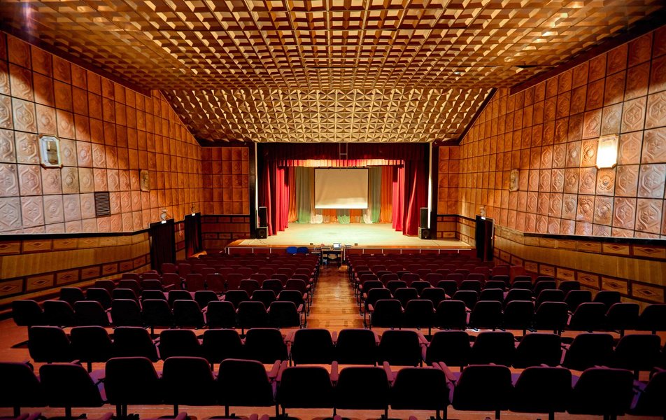Зал выполнен в стиле амфитеатра. Подходит для проведения конференций, форумов, торжественных мероприятий
