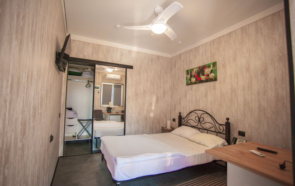 Отель занимает одноэтажный корпус с озелененным внутренним двориком. Жилой фонд включает 19 современных и просторных номеров нескольких категорий: стандартные, двухуровневые студии и двухуровневые семейные. Все варианты размещения располагают удобными спальными местами, мини-кухней, ванной комнатой со стиральной машиной.