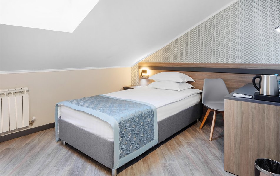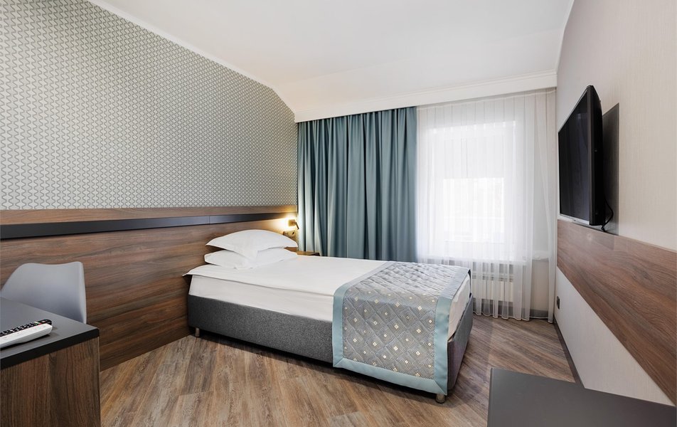 Шестиэтажное здание отеля, оснащенное лифтом, стилизовано под европейский замок. Гостей ожидают номера разного уровня комфорта — от Эконома до 3-х комнатного Люкса. Интерьеры выдержаны в изысканном классическом стиле с использованием пастельных, охристых и сине-голубых оттенков. Все номера укомплектованы качественной мебелью орехового цвета, необходимой бытовой техникой и оснащены санузлом с душевой кабиной или ванной.