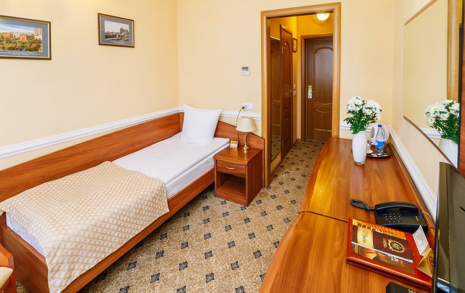 Семиэтажный корпус отеля возвышается на тихой центральной улице Курска. В распоряжении гостей 65 классических номеров разных категорий комфорта. В каждом номере предусмотрен санузел с душевой кабиной, набором косметических принадлежностей, в комнатах установлен кондиционер, есть ЖК-телевизор, электрочайник, мини-холодильник. Номер категории Люкс оснащен ванной с гидромассажем и гостиной зоной с мягкой мебелью.