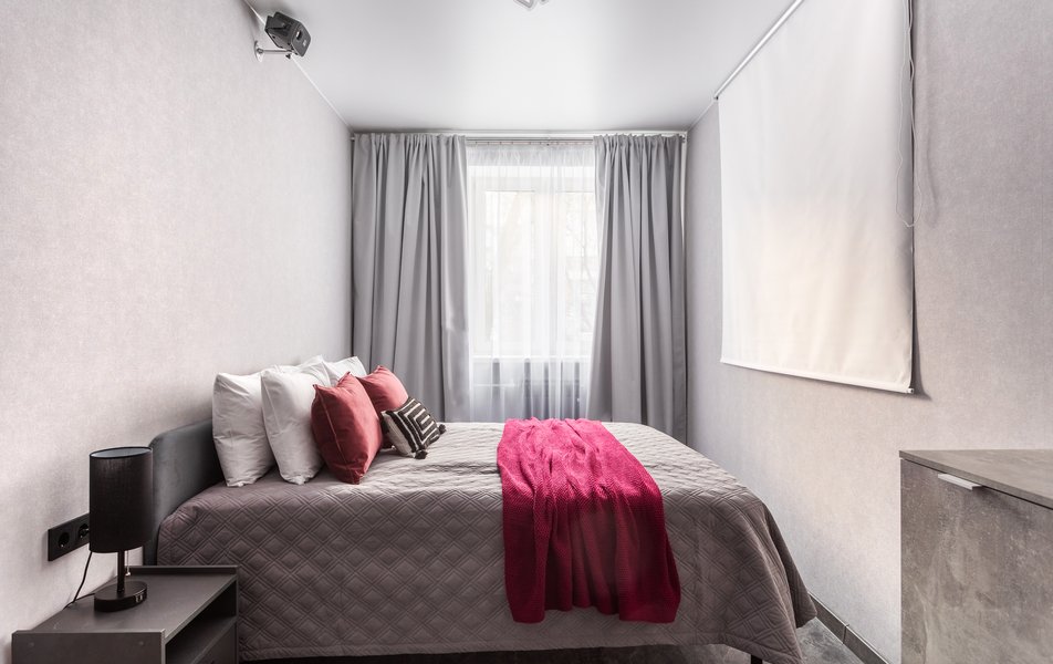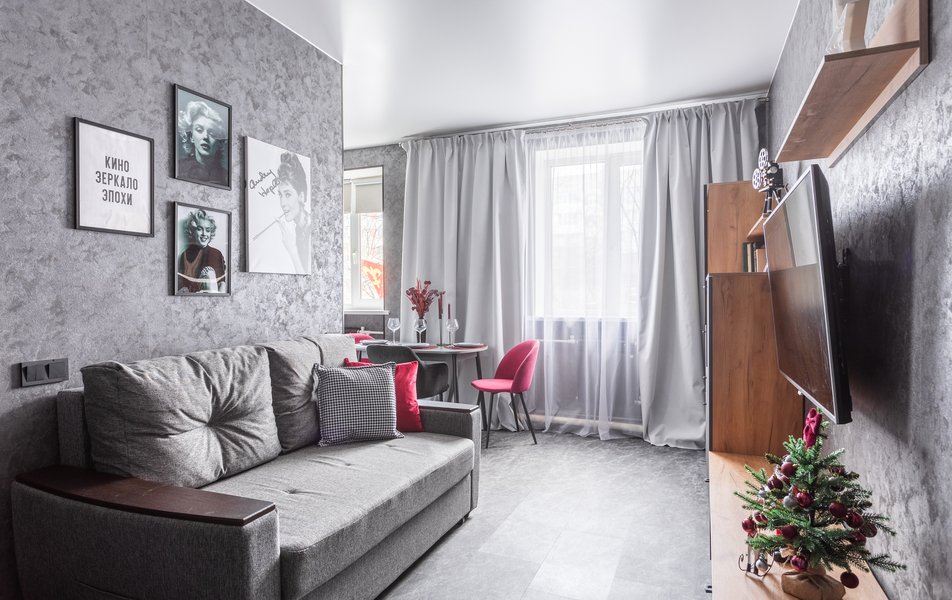 Пространство оформлено в стиле творческой киностудии: раскадровки на стенах, элементы режиссёрского лофта и, главное, профессиональный проектор для иммерсивного просмотра фильмов. Апартаменты рассчитаны на размещение до четырёх гостей. Для сна предусмотрены удобная двуспальная кровать с ортопедическим матрасом и дополнительные спальные места. Кухня полностью оборудована посудой, кухонными приборами и всеми принадлежностями для приготовления еды. В ванной комнате есть стиральная машина, сушилка для белья, фен, утюг с гладильной доской. Гостей ждут свежее постельное бельё, полотенца и средства личной гигиены. Для работы и развлечений доступны Wi‑Fi и Smart TV.