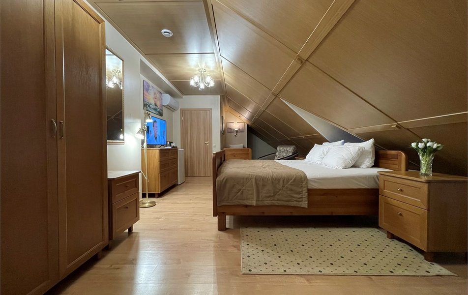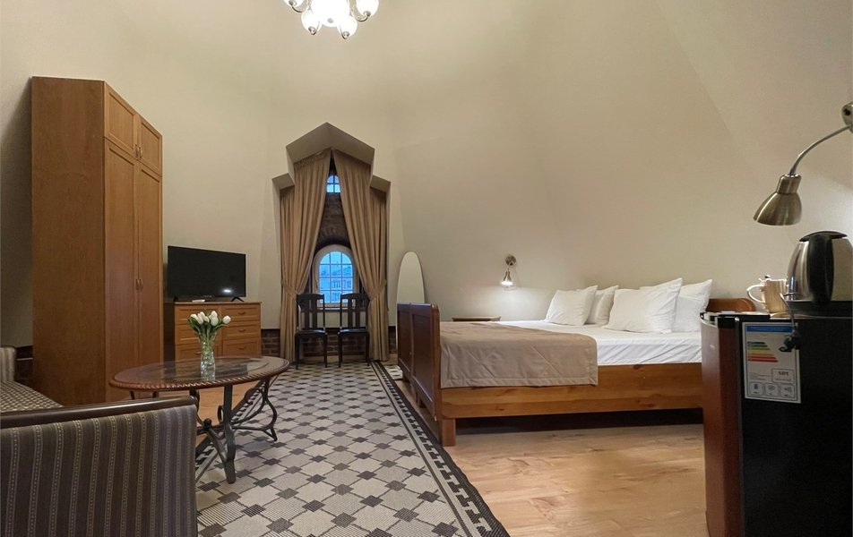 Жилой фонд включает в себя однокомнатные и двухкомнатные номера разной категории комфорта с приятным классическим интерьером, выдержанным в пастельных оттенках. Все номера независимо от уровня комфорта оснащены индивидуальным санузлом с душевой кабиной, везде есть фен, мини-холодильник, телевизор, беспроводной интернет, а в номерах улучшенной категории предусмотрена гидромассажная ванна.