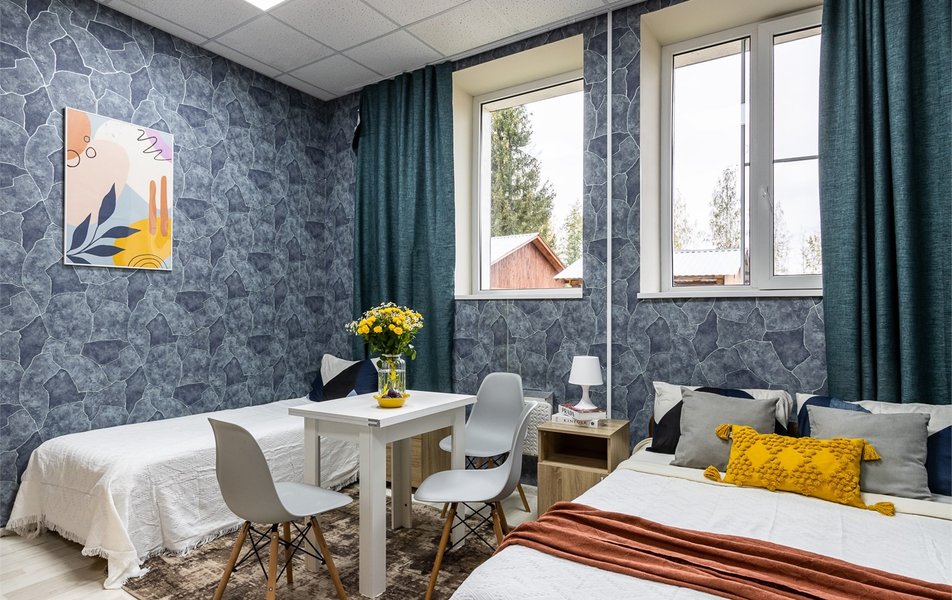 Все варианты размещения объединяет одно: современный дизайн, качественные материалы, продуманная эргономика и внимание к деталям. В номерах — удобные кровати с ортопедическими матрасами, санузел по стандарту (общий или отдельный — в зависимости от категории), Wi-Fi и всё необходимое для комфортного пребывания. Апартаменты и коттеджи дополняются кухней с техникой — чтобы завтрак был домашним, а ужин — по-настоящему тёплым.
