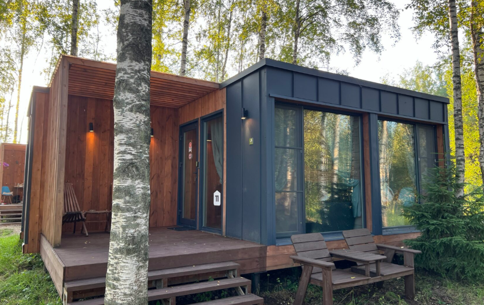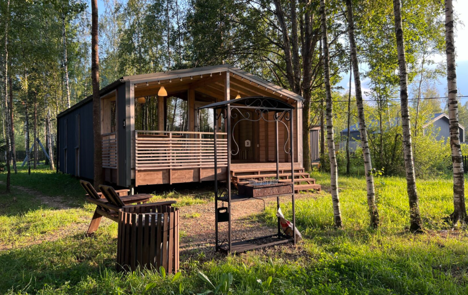 В 40 километрах от Санкт-Петербурга, в поселке Ласточка-2 находятся комфортабельные коттеджи. Гостям на выбор предлагаются два типа домиков, каждый из которых оснащен террасой с зоной отдыха и мангалом: «Дом Смарт для 2-4 человек» и «Дом Комфорт для 2-6 человек».