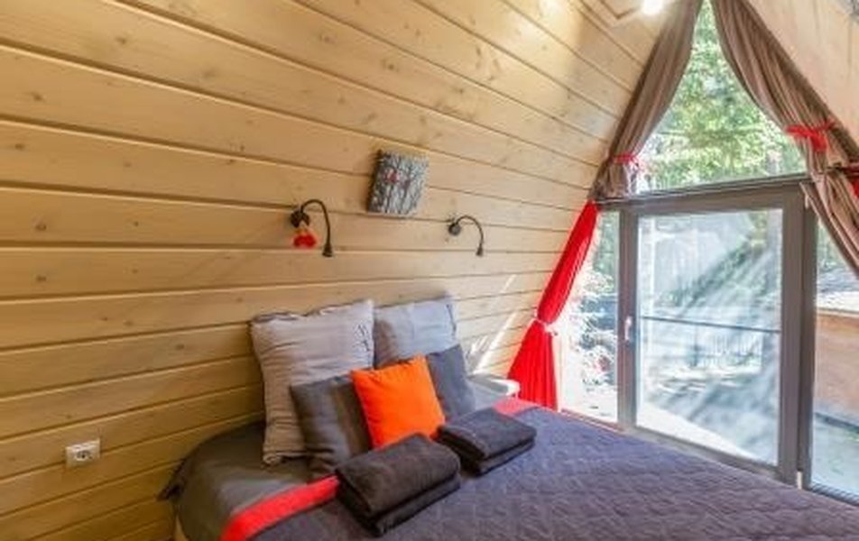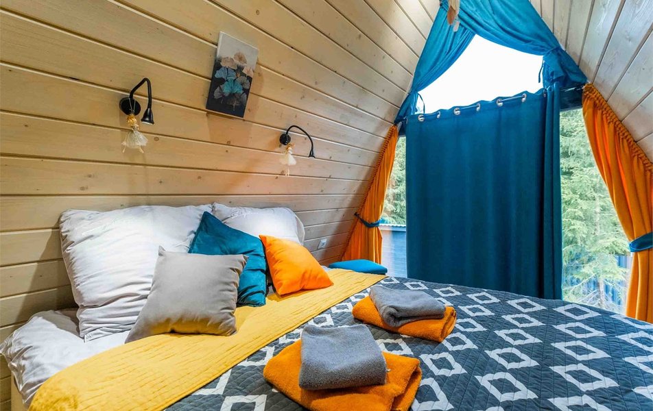 К вниманию гостей представлены A-frame домики с их узнаваемыми треугольными силуэтами, будто сошедшими с иллюстрации к северной сказке. У каждого дома — своя баня-бочка, летняя беседка, качели и мангал с комплектом шампуров. Есть вариант проживания с купелью — идеальное завершение дня под звёздным небом.