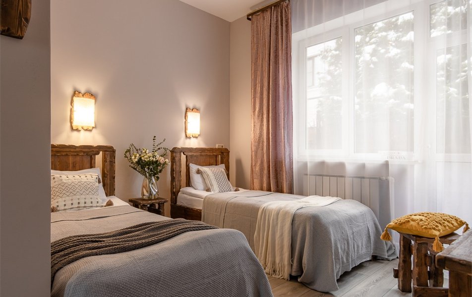 К услугам постояльцев 17 комфортабельных двухместных номеров, в которых предусмотрено все для беззаботного отдыха: телевизор, удобные спальные места, комплект полотенец, гардероб для вещей и зеркало. В ванных комнатах предоставляются индивидуальные гигиенические средства и фен.