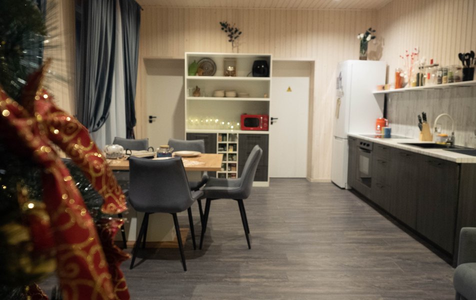 Просторная кухня-гостиная легко разместит большую семью из 4-6 человек за общим столом. Кухня полностью укомплектована всем необходимым для приготовления пищи: имеется плита, духовка, холодильник и посуда. Две отдельные спальни обеспечат комфортный отдых для всех членов семьи. К дому прилегает широкая веранда, где дети могут безопасно играть, а взрослые насладятся завтраком или полюбуются закатом. Задний двор оснащен беседкой и мангалом и открывает живописный вид на леса Токсово.