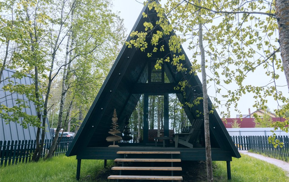 На огороженной территории разместились 9 уникальных домов — пять A-frame и четыре O-frame, каждый из которых представляет собой частное владение. Гостей ждет собственная лесная баня-бочка с террасой, где так приятно насладиться чаем в перерывах между посещением парной, и уютная территория с мангальной зоной, качелями и садовой мебелью, создающая идеальные условия для отдыха на свежем воздухе. Внутреннее пространство коттеджей продумано до мелочей: здесь есть всё для полноценного проживания, включая полностью укомплектованную кухню с современной техникой, посудомоечной и стиральной машинами, кофеваркой и мини-холодильником. Дополняют комфорт смарт-телевизор и стабильный интернет Wi-Fi.