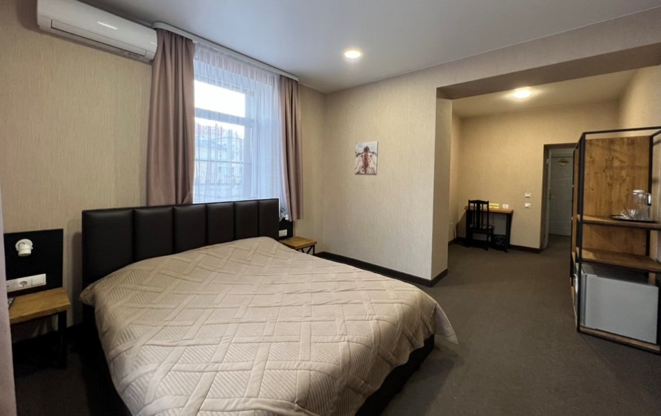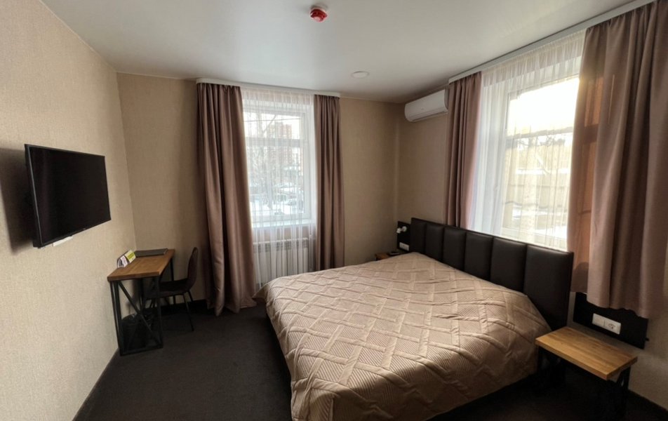Номерной фонд представлен разным уровнем комфорта и вместимости, расположился он в 2-этажном здании. Комнаты оформлены в пастельных оттенках. В каждом из них есть рабочий стол, удобные спальные места, шкаф и телевизор с плоским экраном, а также ванная комната с современной сантехникой и набором полотенец. Утром гости могут насладиться завтраком в кафе. Для личного транспорта отдыхающих предусмотрена парковка.