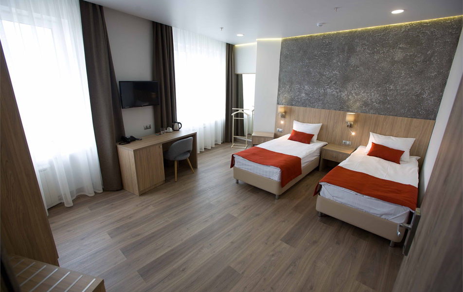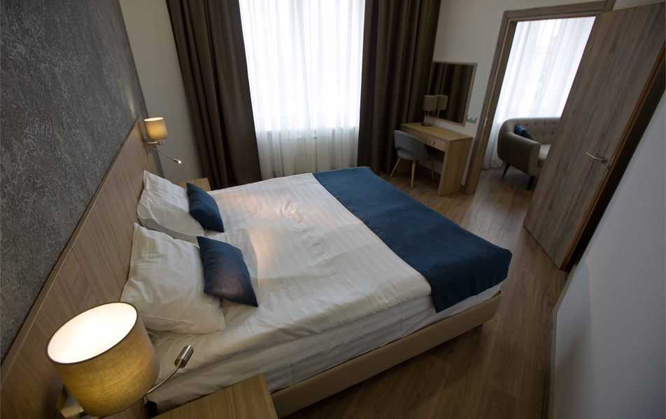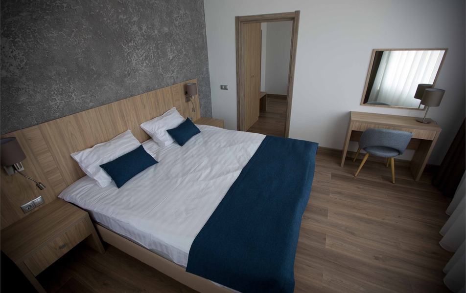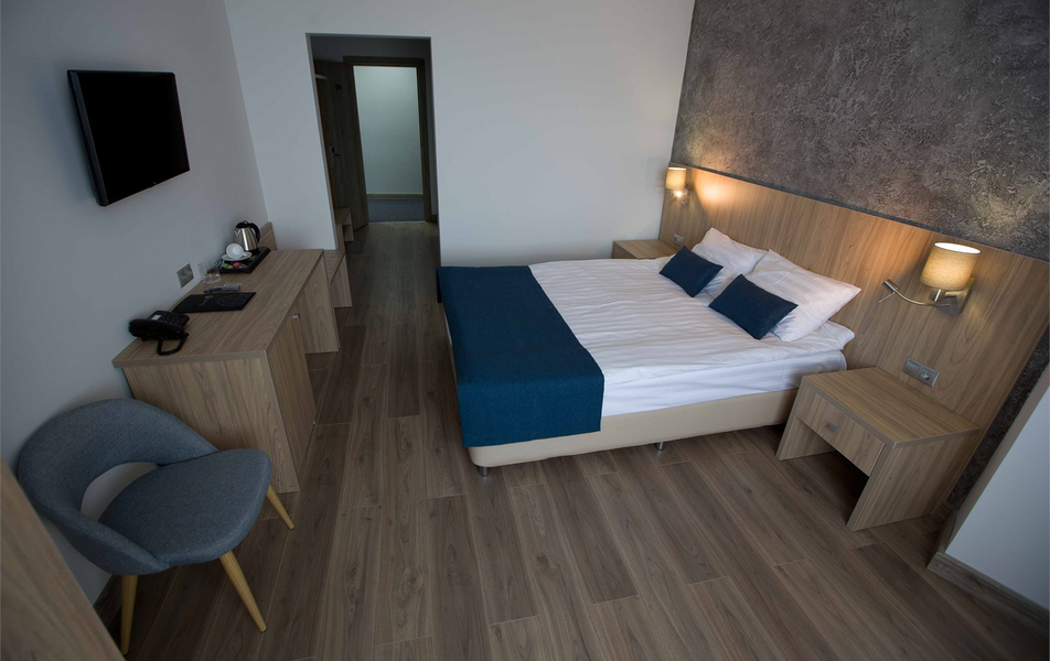 Отель предлагает уютные номера разных категорий. Во всех номерах — ортопедические матрасы, телевизор, холодильник и современная система вентиляции. Здесь создана спокойная и гостеприимная атмосфера для комфортного отдыха.