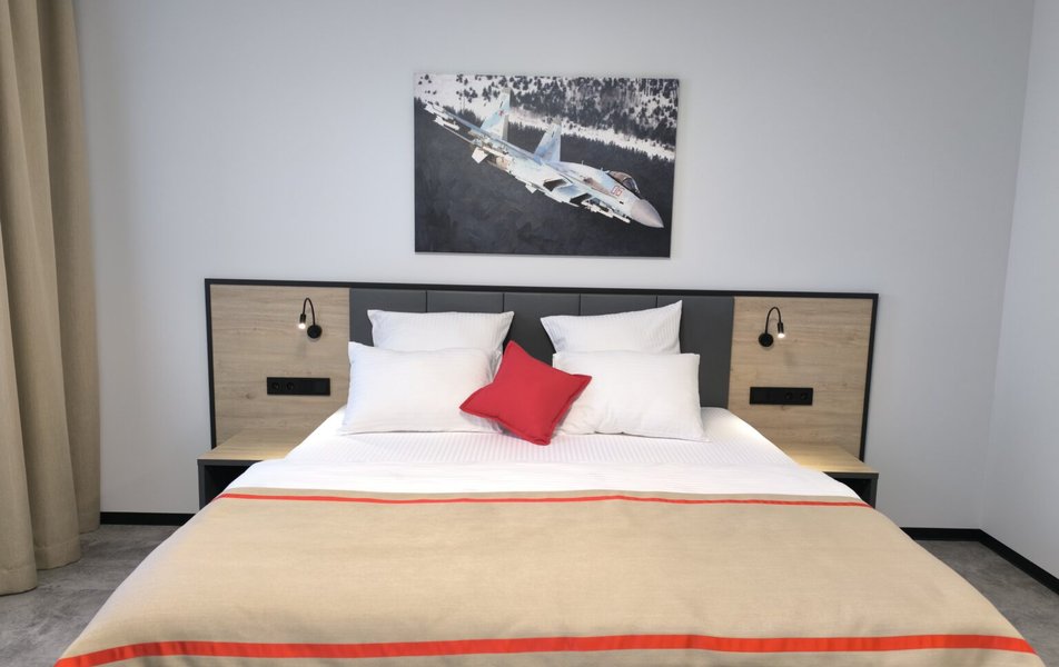 Восемь уютных номеров студийного типа оформлены с вниманием к деталям и оснащены всем необходимым для полноценного отдыха в перерывах между перелетами. Продуманная система климат-контроля и приточно-вытяжная вентиляция создают идеальный микроклимат, а ортопедический матрас на двуспальной кровати и мягкий раскладной диван гарантируют здоровый сон на свежем белоснежном белье. Для работы или планирования маршрутов предусмотрена удобная рабочая зона, а стабильный безлимитный интернет позволяет оставаться на связи.