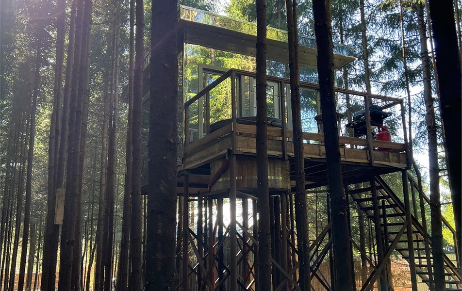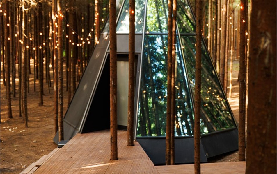 Концепция отеля строится на трёх уникальных типах домов, каждый из которых предлагает свой формат единения с природой. Знаменитый треугольный А-фрейм «Путешественник» площадью 50 м² создан для тех, кто ищет уют в окружении древесных текстур и готов вместить компанию до четырёх человек. Стеклянный дом-пирамида «Любовник» (25 м²) с прозрачными стенами дарит иллюзию полного растворения в лесном пейзаже. А зеркальный дом на дереве «Романтик», поднятый на четырёхметровую высоту, отражает кроны елей и становится незаметным для посторонних глаз убежищем для двоих. Все дома оснащены по стандартам премиум-класса: продумана система кондиционирования, телевизоры и беспроводной интернет. В каждом санузле гостей ждут фен, мягкие банные халаты, тапочки и набор полотенец. Для уюта предусмотрены гигиенические принадлежности, а также чайно-кофейный набор и бутилированная вода.