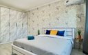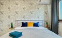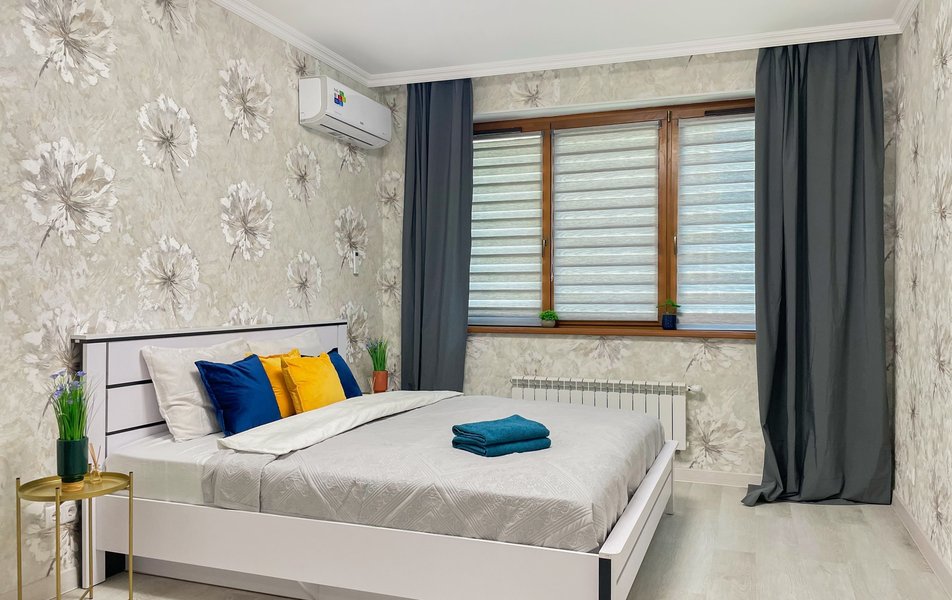 Апартаменты, рассчитанны на проживание до четырех человек, встречает гостей продуманным интерьером и качественными спальными местами. Центральное место занимает двуспальная кровать с ортопедическим матрасом, обеспечивающим здоровый и восстанавливающий сон, а удобный раскладной диван позволяет с комфортом разместиться компании или семье. Кухня полностью оборудована всей необходимой бытовой техникой и укомплектована столовыми приборами и посудой, чтобы ничто не отвлекало от приятного времяпрепровождения. В распоряжении гостей также современная электроника: телевизор, стабильный Wi-Fi, стиральная машина, фен, а также утюг с гладильной доской. Особое внимание уделяется свежести и чистоте: к приезду каждого гостя подготовлено белоснежное постельное белье и полотенца, а тщательная уборка проводится после каждого выезда.