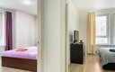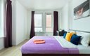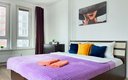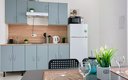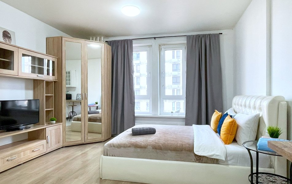 Гостям доступны три варианта размещения, каждый из которых полностью оборудован для комфортного проживания. В зависимости от выбранного формата, апартаменты могут вмещать до шести человек. Спальные места представлены двумя двуспальными кроватями с удобными матрасами и раскладным диваном. На кухне есть вся необходимая бытовая техника, столовая посуда и приборы. В ванной комнате гостей ждут фен, стиральная машина, а также чистые полотенца. К приятным деталям можно отнести качественное постельное белье, наличие утюга с гладильной доской, телевизор и стабильный Wi-Fi. Особое внимание уделяется чистоте: после каждого выезда проводится тщательная уборка.