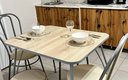 | Оборудование | гладильная доска духовой шкаф набор посуды плита стиральная машина телевизор утюг холодильник электрочайник |