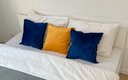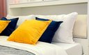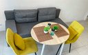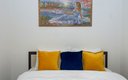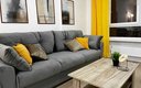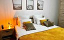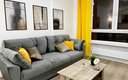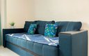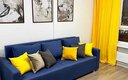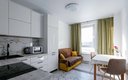 Внутри апартаментов предусмотрено всё для комфортного проживания до шести человек. Гостям предлагаются две двуспальные кровати с ортопедическими матрасами и раскладной диван. Кухня оснащена необходимой бытовой техникой, столовыми приборами и посудой. В ванной комнате есть фен и стиральная машина. К приятным мелочам относятся чистое постельное бельё и полотенца на каждого гостя, телевизор, беспроводной интернет, утюг с гладильной доской. Также предоставляются средства гигиены, чай и кофе. Уборка проводится после каждого выезда, а заселение — бесконтактное, без лишнего ожидания.