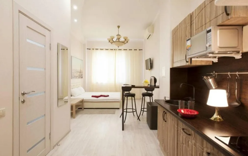 Гостиница предлагает гостям уютные комфортабельные номера, можно по-настоящему расслабиться. Каждый номер оборудован современной мебелью и необходимыми принадлежностями для проживания: полотенца, косметические средства, набор для чаепития и т.д. Для большего комфорта в номерах есть кухонная зона с бытовой техникой и посудой. При необходимости гости могут приготовить себе еду в любое время суток, что особенно удобно для постояльцев с детьми.
