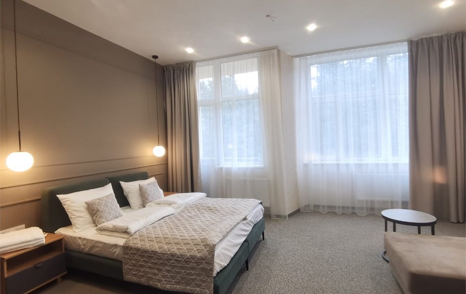 В распоряжении гостей — просторные номера, каждый из которых оснащен современной техникой, кондиционером, телевизором и стабильным Wi-Fi. Ванные комнаты укомплектованы феном, полотенцами и необходимыми гигиеническими принадлежностями. Для создания домашнего уюта в номерах предусмотрены чайные принадлежности и питьевая вода. Практически все категории имеют собственные террасы, откуда открывается вид на окружающую природу. В ближайшее время к номерному фонду добавятся отдельные зеркальные дома с панорамным остеклением, ориентированные на тех, кто ценит эстетику и максимальное единение с лесом.