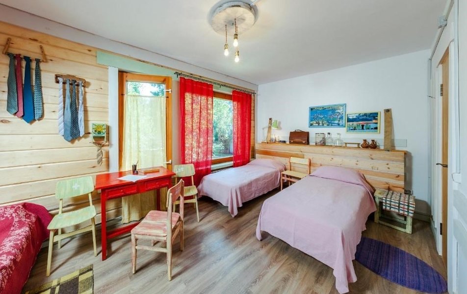 Дача-отель на 15 номеров с общей каминной гостиной и Библиотекой, выполнена в стиле 30х годов прошлого века «Гранж Авангард». Каждый номер с индивидуальным дизайном.