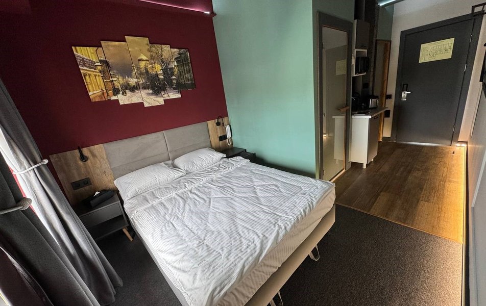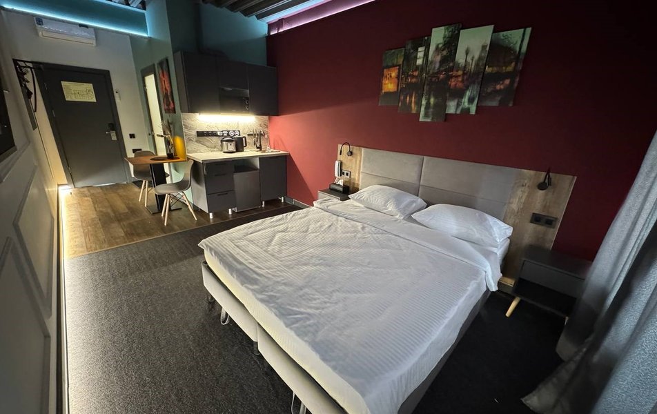 Гости могут выбрать просторные апартаменты с полноценной кухонной зоной или уютный стандартный номер. В апартаментах есть всё для самостоятельного приготовления пищи: мультиварка, микроволновая печь, холодильник, электрический чайник и вся необходимая посуда. В каждом помещении, независимо от категории, царит забота о комфорте: Wi-Fi, современный кондиционер, телевизор и умная колонка «Алиса», всегда свежее бельё и полотенца. Рядом с отелем доступна парковка.