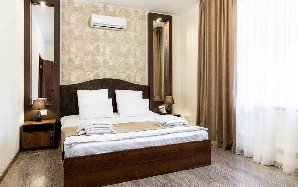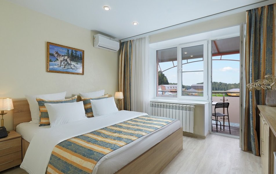 Гостиница предлагаем своим гостям просторные номера, уютное лобби с баром, гастрономический ресторан, ухоженный парк на территории, банкетные залы, летние веранды, беседки для барбекю, банный комплекс, зону отдыха у фонтана.
