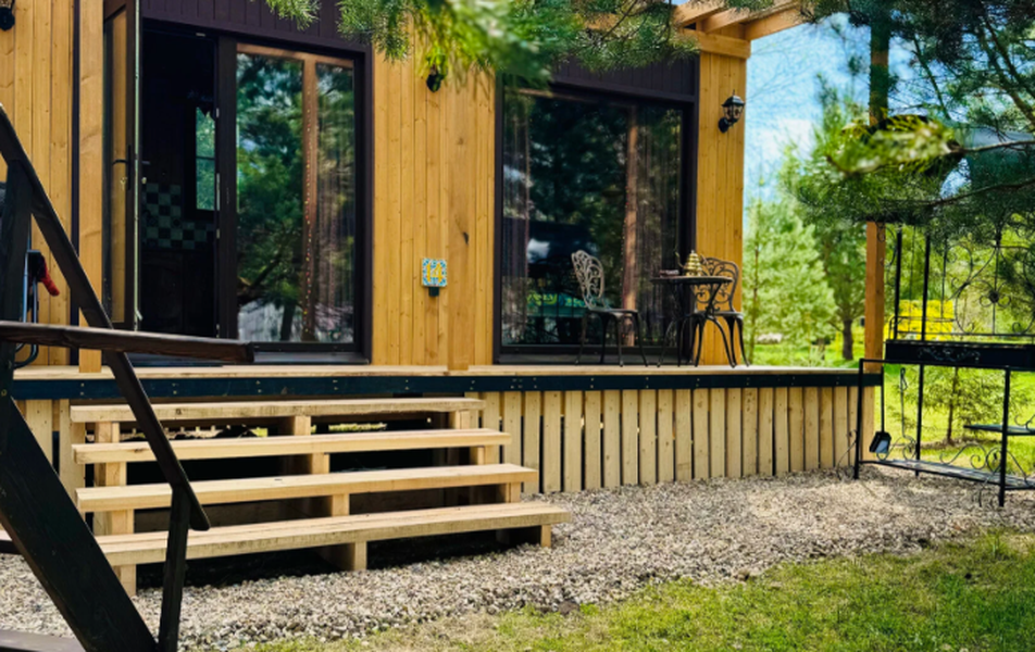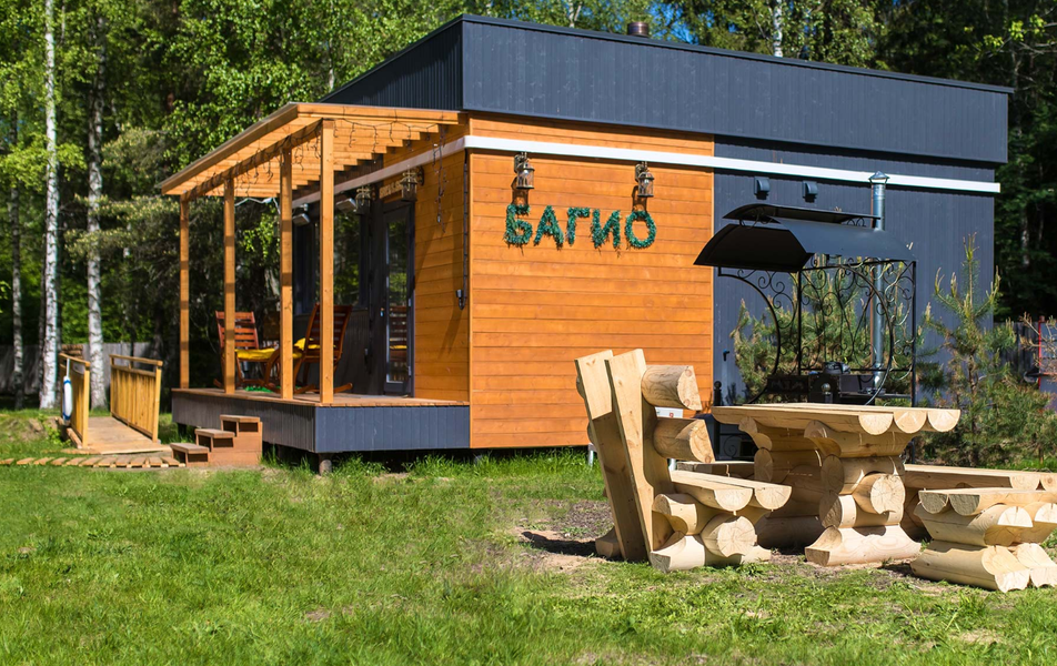 На территории также расположена русская баня на дровах, уютные зоны отдыха, пруд и бассейн. Для любителей активного образа жизни предусмотрена спортивная площадка с брусьями и скамьей для пресса, теннисный стол, волейбольная площадка. Также гости смогут покататься на велосипедах или взять в аренду сапы. А еще есть бадминтон, фрисби, футбольный мяч и дартс.