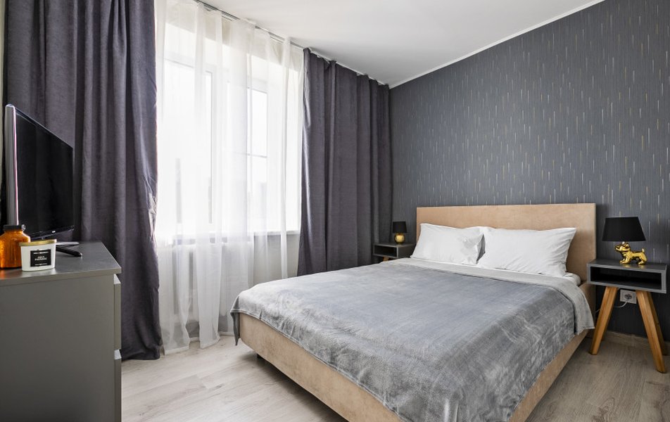 Гостям предлагается современная квартира площадью 40 кв. м, рассчитанная на комфортное размещение до четырех человек. Пространство включает спальную зону с двуспальной кроватью и гостиную с раскладным диваном. В апартаментах есть балкон, дополнительные подушки и светонепроницаемые шторы для полноценного отдыха.