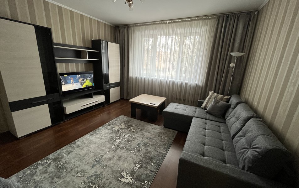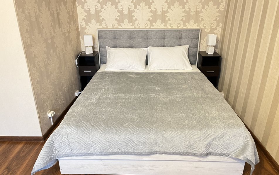 Внутри гостей встречают светлые и тщательно подготовленные апартаменты с продуманной планировкой, где каждый квадратный метр работает на комфорт. Основное спальное место - широкая двуспальная кровать - дополнено полноценным раскладным диваном, что позволяет с удобством разместить небольшую семью или компанию друзей. Оформление выдержано в тёплых, нейтральных тонах, создающих ощущение спокойного и аккуратного личного пространства.