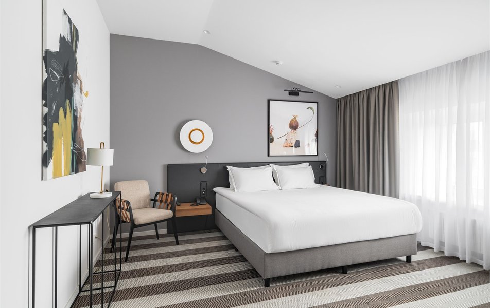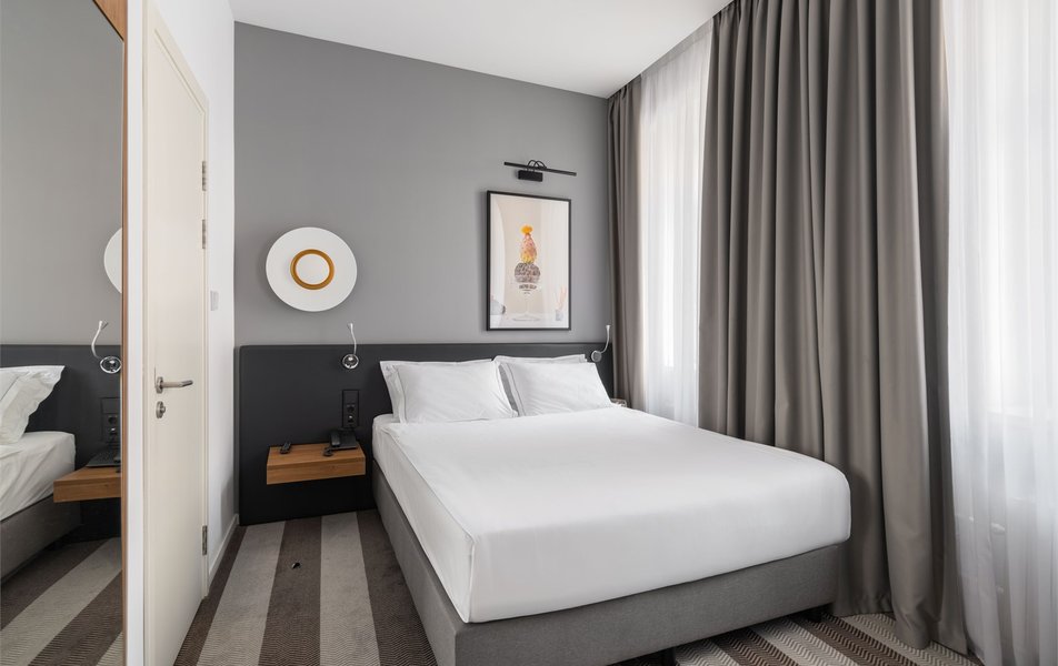 Отель предоставляет 42 уникальных номера, расположенных в 6-этажном здании. Каждый номер оборудован стильной мебелью, телевизором, мини-баром, звукоизоляцией и кондиционером. Ванная комната включает фен, халат, тапочки и все необходимые гигиенические принадлежности. Гости могут насладиться великолепной средиземноморской кухней в ресторане отеля с баром. Для организации деловых встреч, предусмотрен конференц-зал, оборудованный современной мультимедийной техникой.