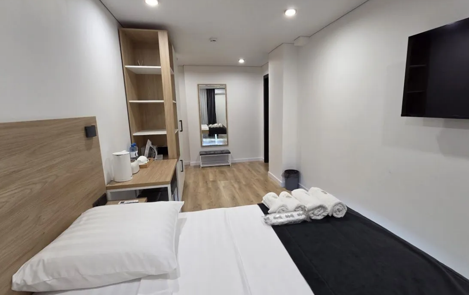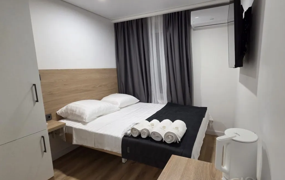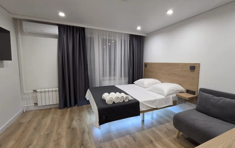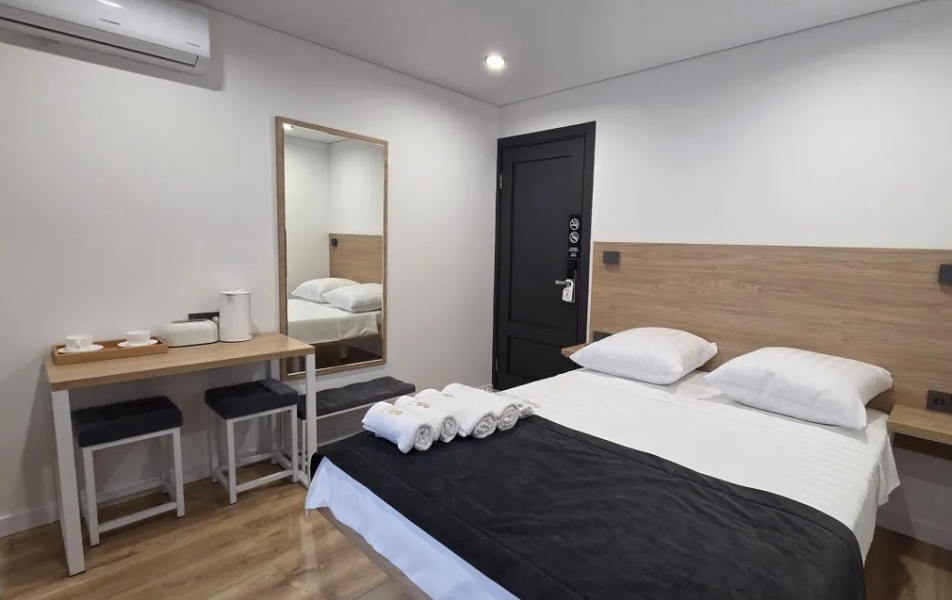 В номерах предусмотрены удобства, обеспечивающие комфортное размещение гостей: кондиционер, телевизор со Smart TV, холодильник и прочие элементы для повседневного пребывания. Кроме этого, номера оборудованы индивидуальными санузлами, а пространство организовано так, чтобы создать уютную и функциональную среду для отдыха после дня, проведённого в городе или по делам. Гостям также предоставляется доступ к Wi-Fi на всей территории объекта и возможность размещения с домашними животными.
