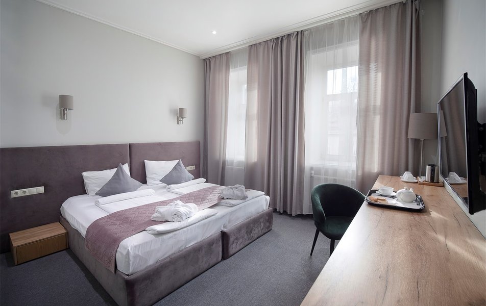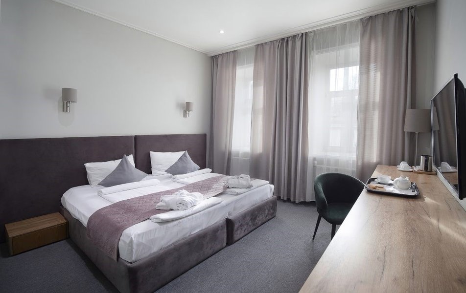 Отель разместился в трехэтажном историческом здании, расположенном в тихом центральном квартале столицы. В распоряжении гостей комфортабельные номера оборудованные всем необходимым — есть кондиционер, плазменный телевизор, фен, электрочайник, в ванных комнатах для гостей подготовлены косметические наборы и тапочки. Среди услуг —круглосуточная стойка регистрации и высокоскоростной интернет.